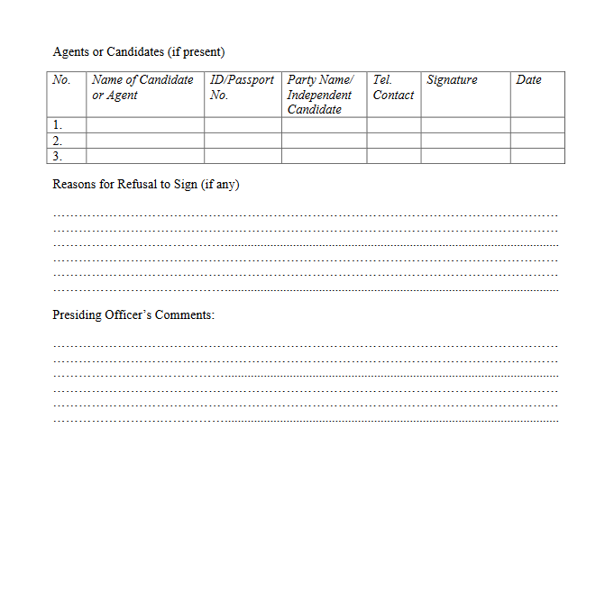 - Fill out the result on the tallying sheet (Form 33 in the Regulations Schedule)