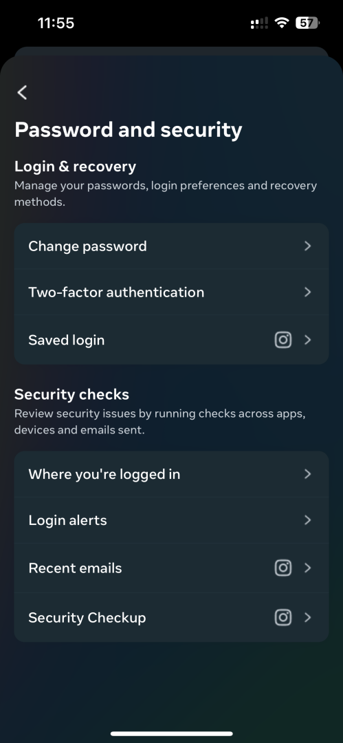 Go to your profile by clicking the bottom right corner icon. Then tap the two stripe icon on the top right and choose Settings. There, choose the Account option and then click on Security. This should take you to the Accounts Centre. Finally, open the Password and security screen and then click on Two-factor authentication