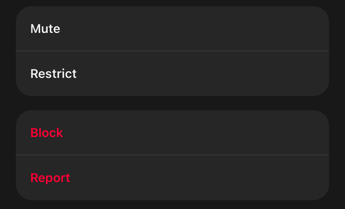 - Click the three dots below the profile picture, select Block and then confirm.