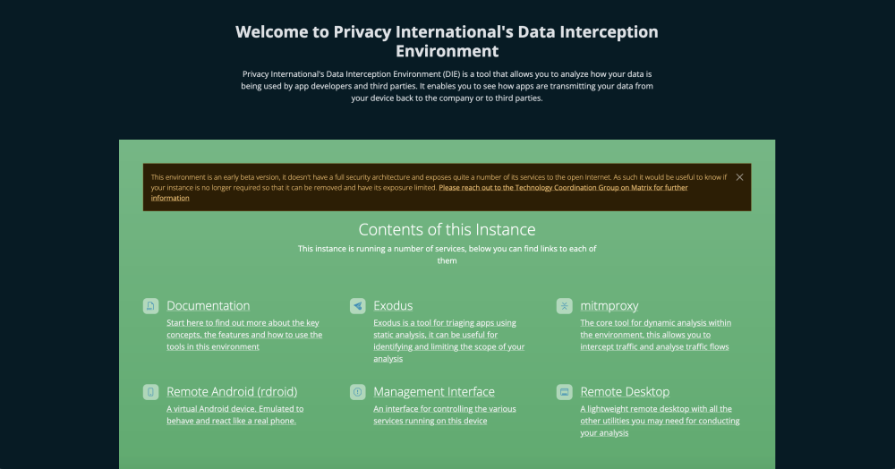 The DIAAS is a web traffic interception tool that allows us to view the requests and responses sent by apps over the web (note the DIAAS only shows client-server interactions, not server-to-server interactions). When running an app in the DIAAS environment we can view the web traffic of an app, for example the web requests they send to URLs, which can help to reveal any calls to third party deployers. The first step in the research involved running each app through the DIAAS to view the web requests being sent to various third parties as we interacted with the app, from the moment we set up our accounts to logging our period cycle data.