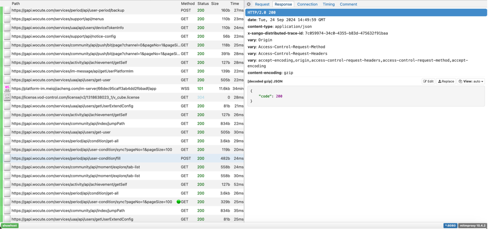 While inputting our cycle information, we saw all our inputs were logged in the web traffic, such as codes representing our bleeding, energy levels and moods, as well as the actual text of a note we wrote in the app: