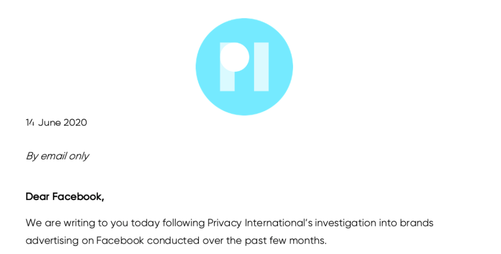 We are writing to you today following Privacy International’s investigation into brands advertising on Facebook conducted over the past few months.