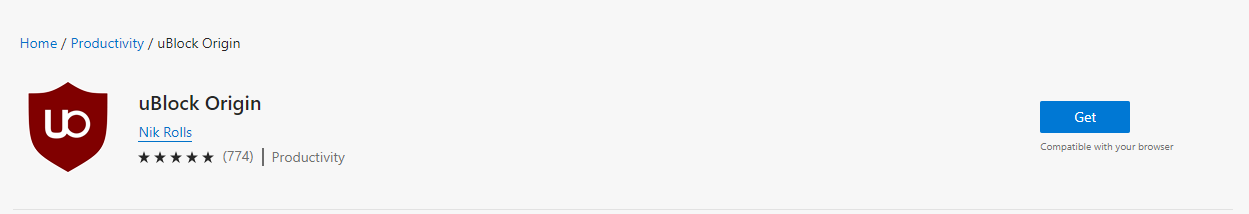 Like any other add-on, install uBlock Origin by visiting the Microsoft Edge Add-ons Store and clicking on Get (Fig. 1) and then clicking on Add extension when prompted (Fig. 2).