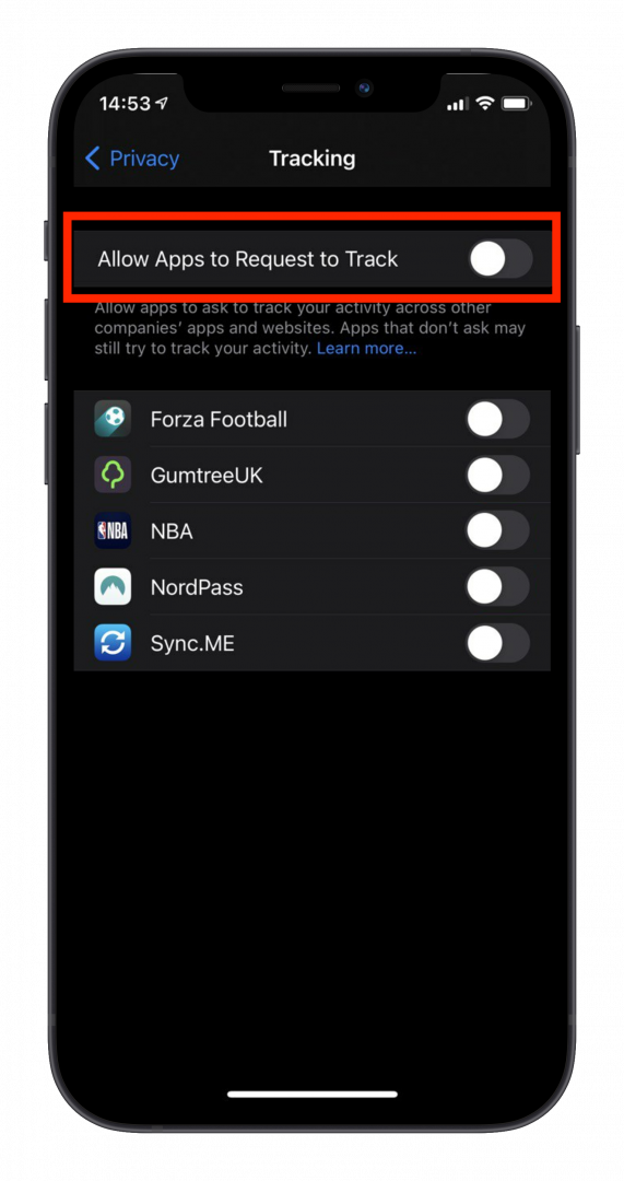 If you decide to keep Allow Apps to Request to Track turned ON, when installing a new app you will be prompted about wether or not you want that app to track your activity across other companies and websites. So even in that case, you are still offered granular app by app control. You can always go back and review which apps you've given tracking permission to, at the bottom of the Settings > Privacy & Security > Tracking menu.