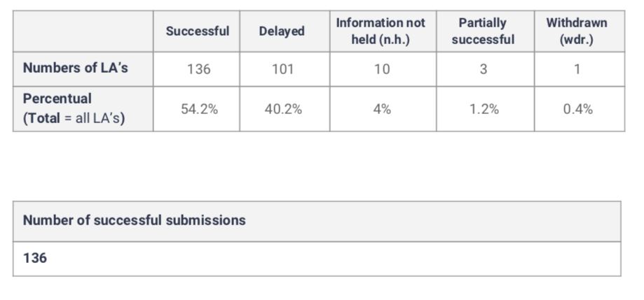 At the end of November 2019, we reviewed all responses received to date from local authorities. This amounted to 136 responses.