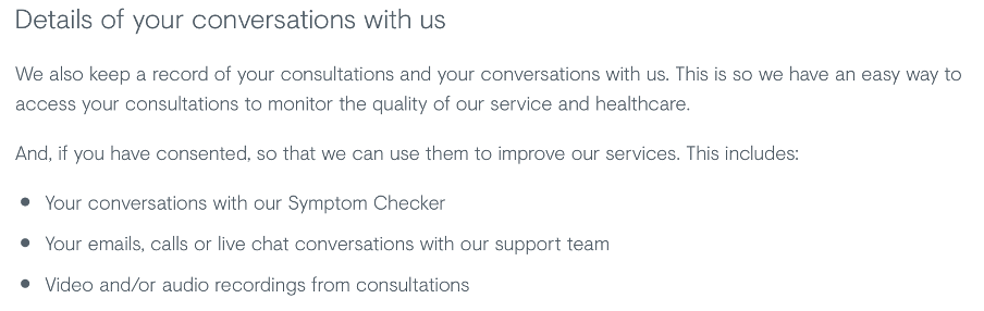 Screenshot taken from Babylon’s Privacy Policy on 7 October 2021